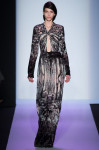 BCBG MAX AZRIA got the show started with their incredible pieces of all things luxurious such as leather and fur. The dresses were very tailored and detailed with stripes as well as free flowing and feminine. The color scheme black with a hint of color here and there is always New York chic. My favorite design from the collection is the key hole opening printed gown. It is slightly edgy but also lady-like at the same time.
