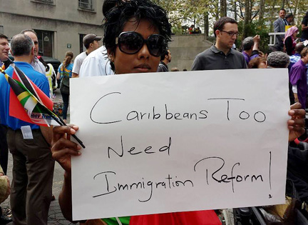 The Hard Beat Communications executive, along with Guyanese Valence Williams and Menes De Griot were the lone Caribbean nationals joining the New York Immigration Coalition organized rally in Brooklyn, NY, as they put the spotlight on the voiceless Caribbeans who are undocumented and desperate for immigration reform yet remain in the shadows.