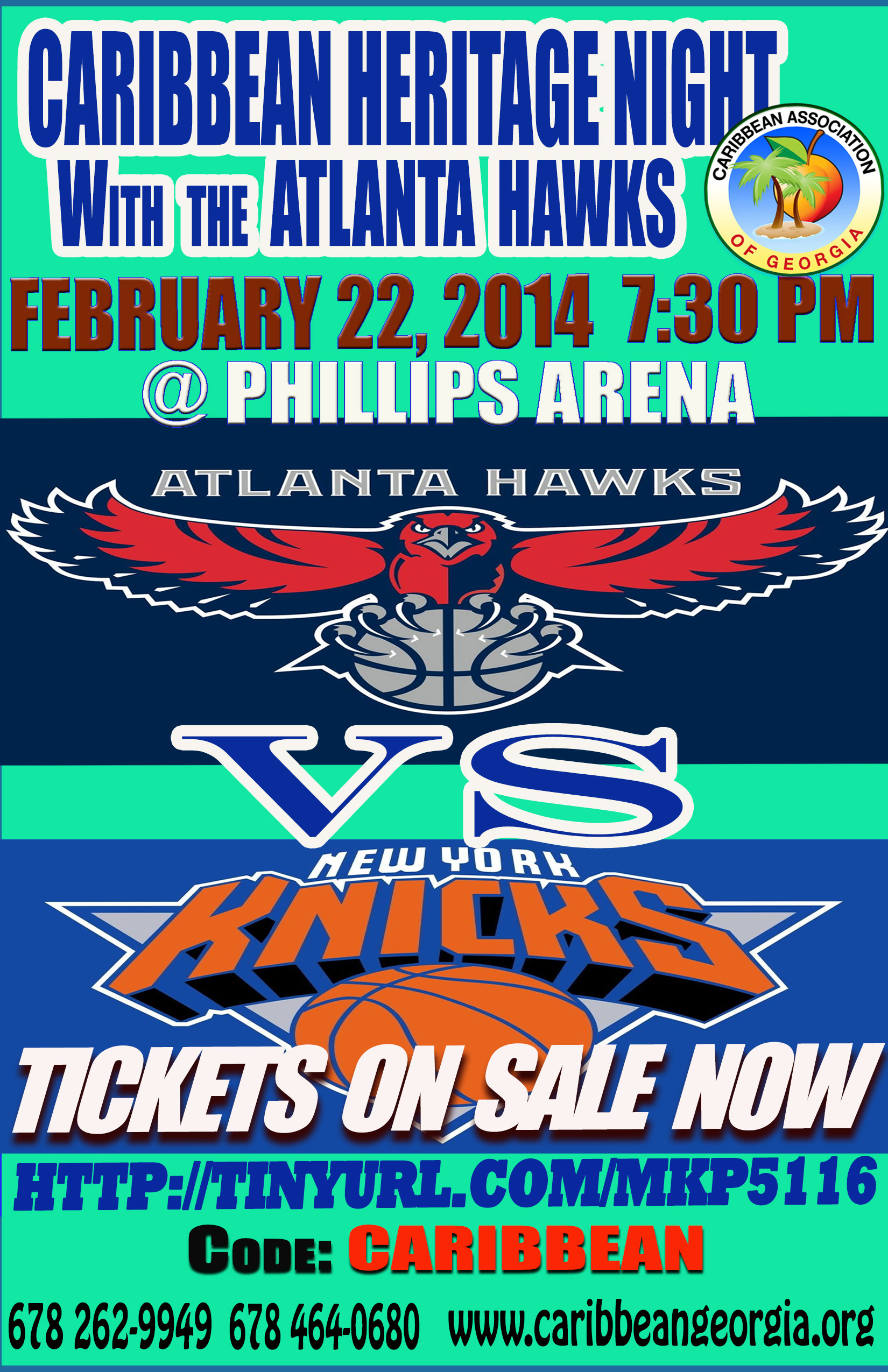 The Caribbean Association of Georgia proudly presents Caribbean Heritage Night with the Atlanta Hawks on February 22, 2014 when the Hawks take on the New York Knicks.