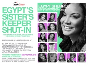 (ATLANTA) – February 20, 2013 – Clark Atlanta University (CAU), in conjunction with the Women’s Empowerment Conference and the Egypt Cares Family Foundation, presents the “Egypt’s Sister’s Keeper Shut-In,” an all-female overnight mentoring boot camp for 150 young women ages 18 and up hosted by HGTV host and V-103 Atlanta personality Egypt Sherrod.