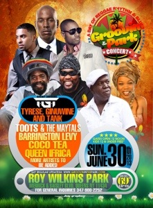 The annual New York City music festival Groovin In The Park is pleased to announce their third concert for Sunday June 30 at Roy Wilkins Park in Queens, New York. This year’s concert lineup will feature reggae legends like Toots & The Maytals, Barrington Levy, Cocoa Tea and Queen Ifrica as well as r&b powerhouse TGT (Tyrese, Ginuwine and Tank). More acts will be announced at a later date.