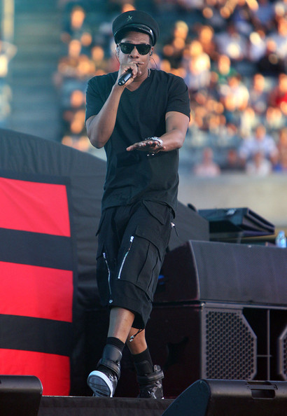 Jay-Z performs before U2 at Patersons Stadium in Perth, Western Australia. I am not feeling his outfit! Do you Queen B approved this outfit?