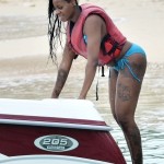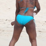 How about Fantasia Barrino in that bedazzled itsy, bitsy tiny, weeny, blue majestic string bikini? The American Idol alum was wining (American pop culture calls it twerking) on her vacation in Barbados. Her hard work on her body and the album paid off! She was nominated this week in the Soul Train Music Awards coming up in November. The two categories are: Best R&B/Soul Female Artist and Album of the Year for ‘Side Effects of You’. I guess with that said she deserves a vacation. Unfortunately looks like she got something stuck in her foot and the whole crew had to get it out…somebody’s gotta do it. Check out the pics!
