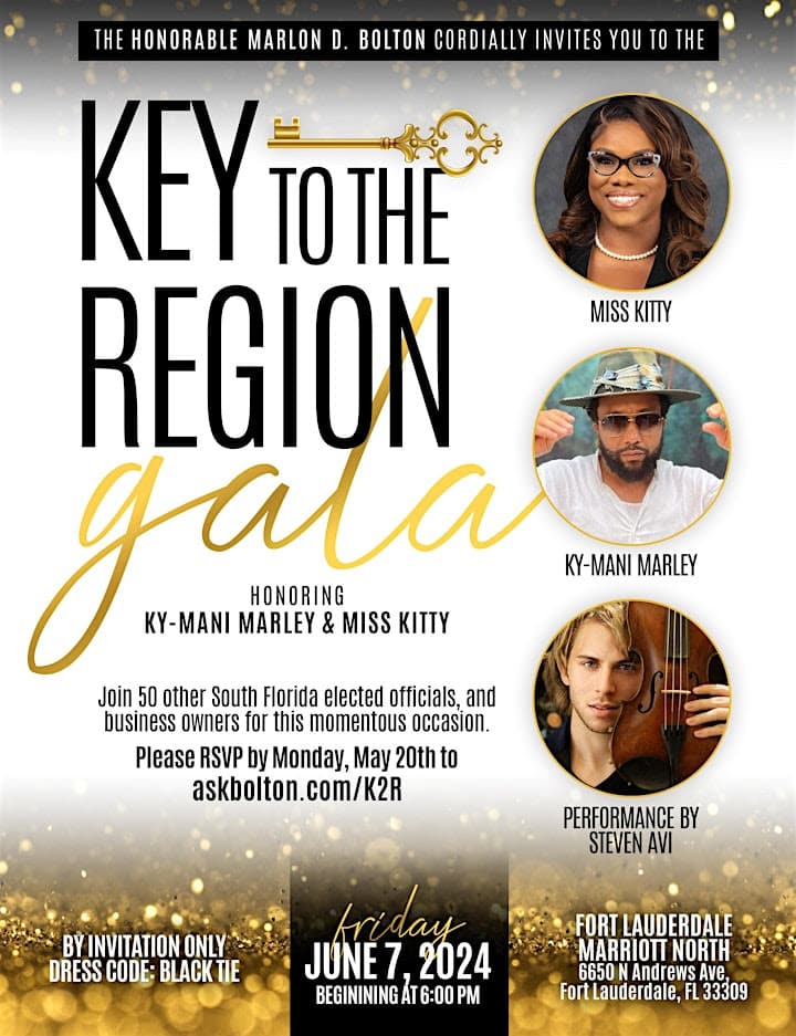 For more information about the Key to the Region award ceremony and to RSVP, please contact Commissioner Marlon Bolton at (954) 275-3850.