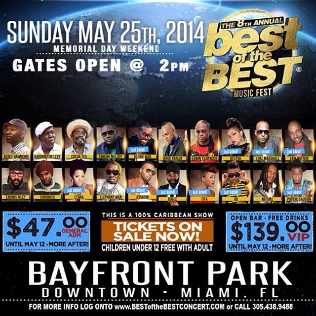 Its that time of the year again! Time for the biggest, baddest, greatest Caribbean show on earth, “Best of the Best”. The 8th Annual Best Of The Best music concert, arts and culinary fest, returns to Bayfront Park (301 Biscayne Blvd.) in the heart of downtown Miami on Sunday, May 25th. If you love reggae, soca, or dancehall music then this is the show for you!