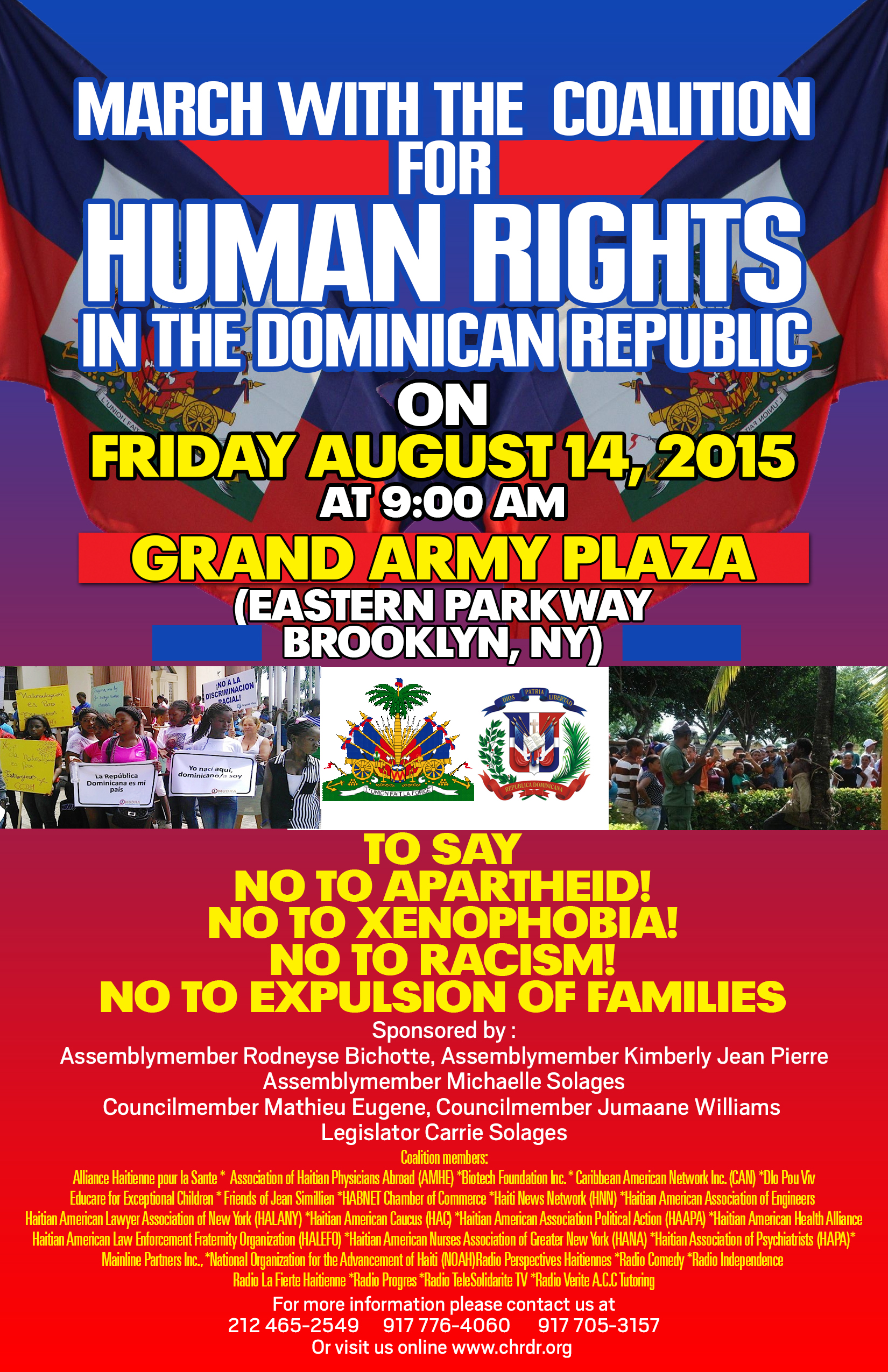 The Coalition for Human Rights in the Dominican Republic (CHRDR) will be marching on August 14, 2015 at 9:00 a.m. over the Brooklyn Bridge in support of Dominicans of Haitian descent who have lost their citizenship rights and in solidarity with Haitian migrants living in the Dominican Republic.