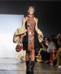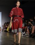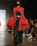 Kimberly Tandra presents her second collection this year at New York fashion week and didn’t disappoint. This collection draws inspiration from her hometown Surabaya creating prints and silhouettes that model the cities modern skyscrapers. The architecturally crafted pieces mix leather, dramatic sleeves, and Ayam Kate prints. The collection also featured stunning head pieces that live up to the name of the collection (Nucleus, a core or central part of something).