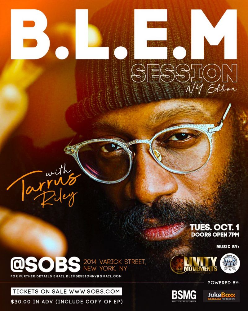 Simply and expertly, Tarrus replaced the typical album listening affair with a live band experience session. “People can expect to have an up close and personal BLEM experience with Tarrus Riley, who will be performing in the famous SOBs for the first time.This event with limited capacity will be a special event for NY” stated his publicist Ronnie Tomlinson. In an added bonus and to keep the night’s memories alive, the tickets admission will include a copy of the coveted EP.