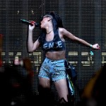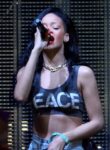 Bajan popstar Rihanna performs onstage at the 2012 Coachella Valley Music & Arts Festival. At one point Rihanna was joined on stage by Calvin Harris.