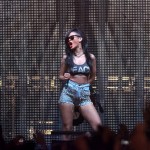 Harris is the Scottish DJ, singer, songwriter, record producer. and dreamy voice accompanying Rihanna on her recent single, “We Found Love (In a Hopeless Place)” Harris drilled the crowd with notable hits “You Used to Hold Me” and “Bounce” before the pint size powerhouse jumped out from behind the speakers. Go Riri!!