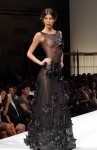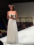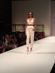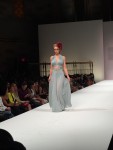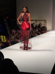 Santa Clara Moda is an evening-wear designer whose designs are whimsical and somewhat mystical. Her models looked like goddesses that just glided down the runway effortlessly. She has an affinity for using lace within her gowns which added an extra touch of femininity. One of her designs incorporated fringe which is a very big trend right now. It was a playful way to incorporate this style into one of her cocktail dresses. She has a great understanding of fluidity in a garment.