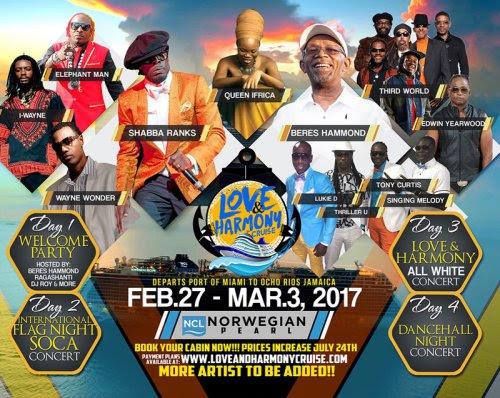 Rockers Island Entertainment, in association with Best Of The Best Entertainment and Massive B., are proud to announce the first annual Love & Harmony Caribbean Cruise, set to sail roundtrip to Ocho Rios, Jamaica from the Port of Miami, February 27th – March 3rd 2017.