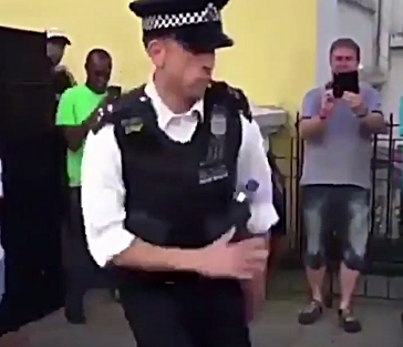 Video shows a police officer dancing while on duty at Notting Hill carnival in London last week Monday. The officer is spotted by one of the DJs and then shows off his moves to the enthusiastic crowd. He even did a bogle!!! LOL